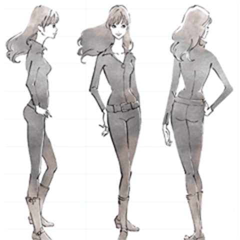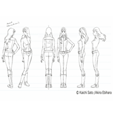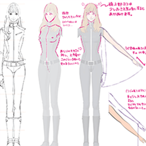 人気イラストレーター、蛯原あきらさんによるキャラクターの設定画。 特にアクセントが強い表情の箇所は、3Dモデルに演技させる際の重要なポイントになる為、前出の監督によるイメージボードをベースに蛯原さんが描き、さらに監督が指示を出してクリーンナップ、という行程で完成しました。