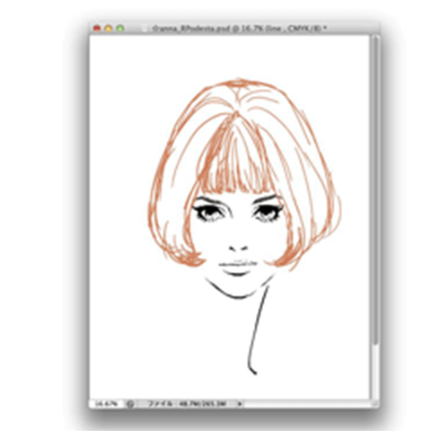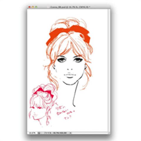劇中で動かす3DCGモデルです。ここからさらに表面に水彩イラスト調のテクスチャーを加えています。一旦出来上がった後、頭の大きさやボディライン等を細かく蛯原さんにチェックして頂き、実際のモデルが完成しました。