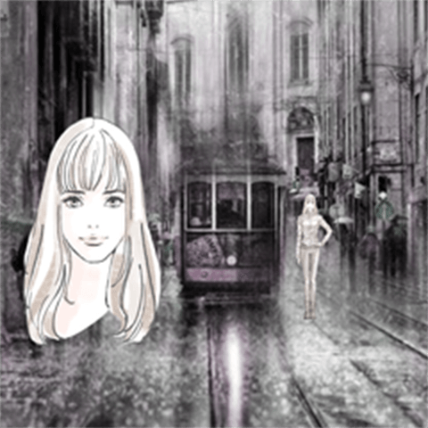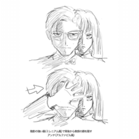 同じくイラストレーター、蛯原あきらさんによる劇中挿入イラスト。往年の名作「哀しみのベラドンナ」風にイラスト自体を画面に表示、或いは一部を動かすという手法で、CGのみに頼らないアナログ感の高さも追求しました。